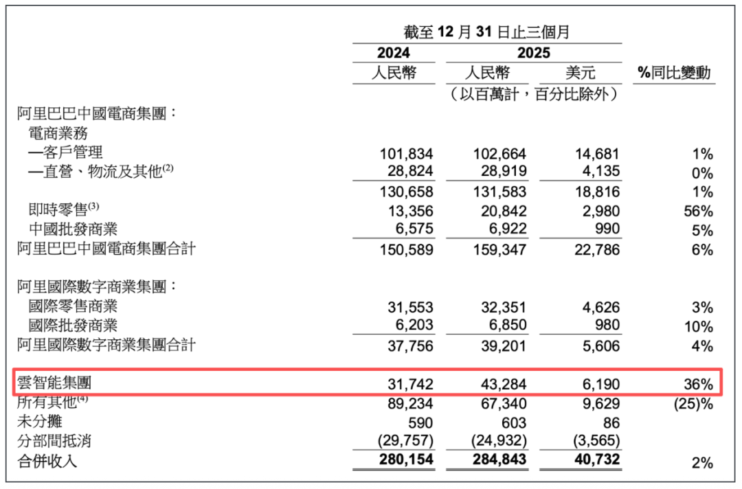 是阿里持续聚焦电商和“AI+云”计谋的一年,付出更多的勤奋。阿里的这一块营业增速曾经较着放缓。若是不考虑卖掉银泰和高鑫零售,“1+6+N”架构也从2025年8月收缩为阿里中国电商、阿里国际数字贸易、云智能?